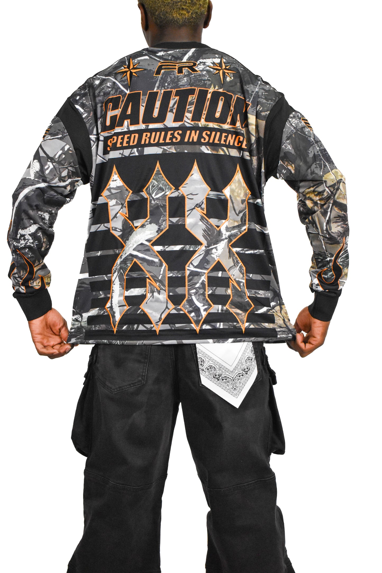 A stadium long sleeve jersey featuring unique multi-patches, ribbed neck, and sleeves.