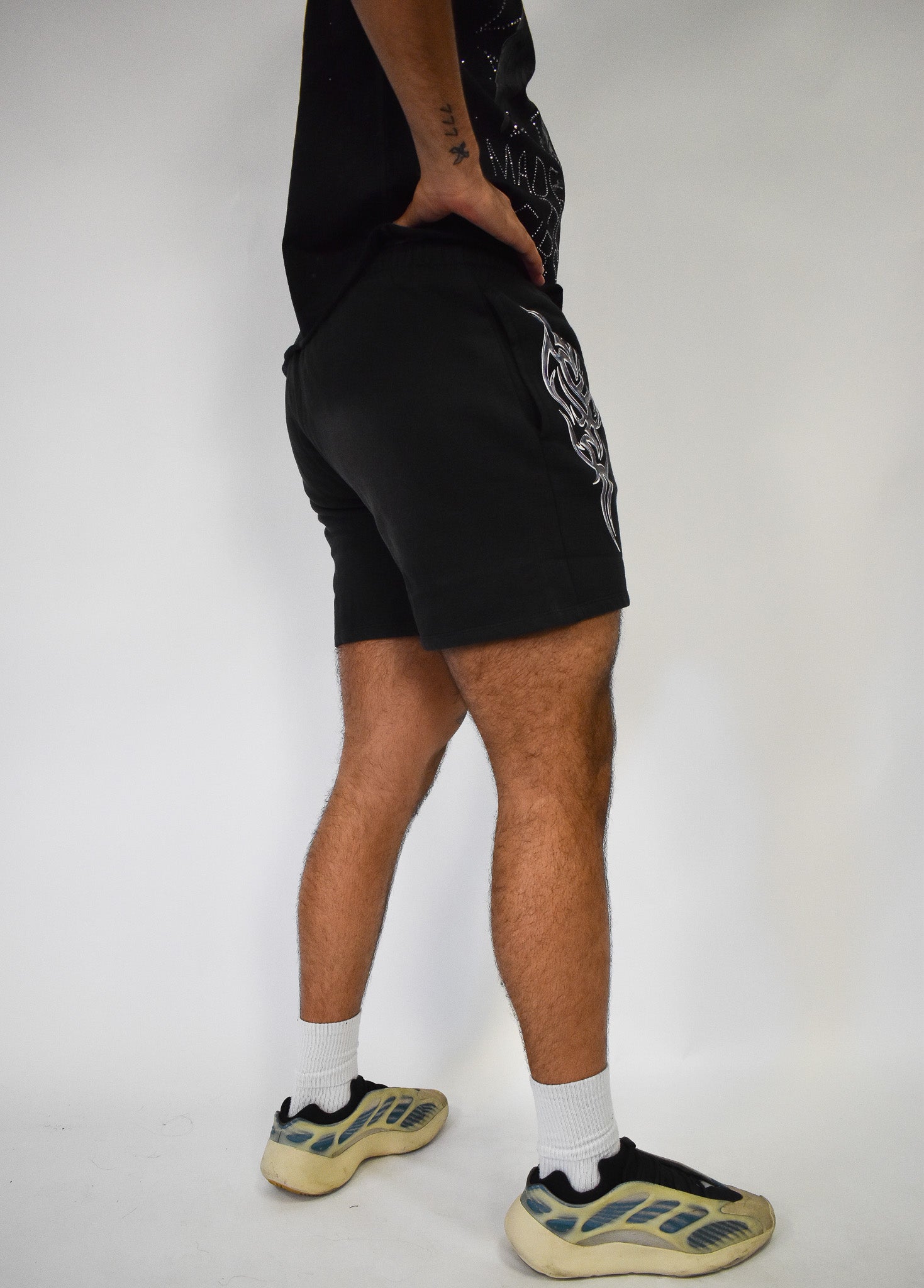 Unisex cotton shorts with cybersigil print detailing.