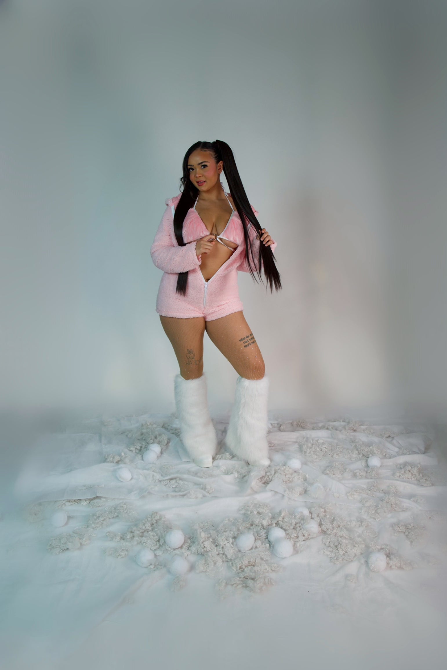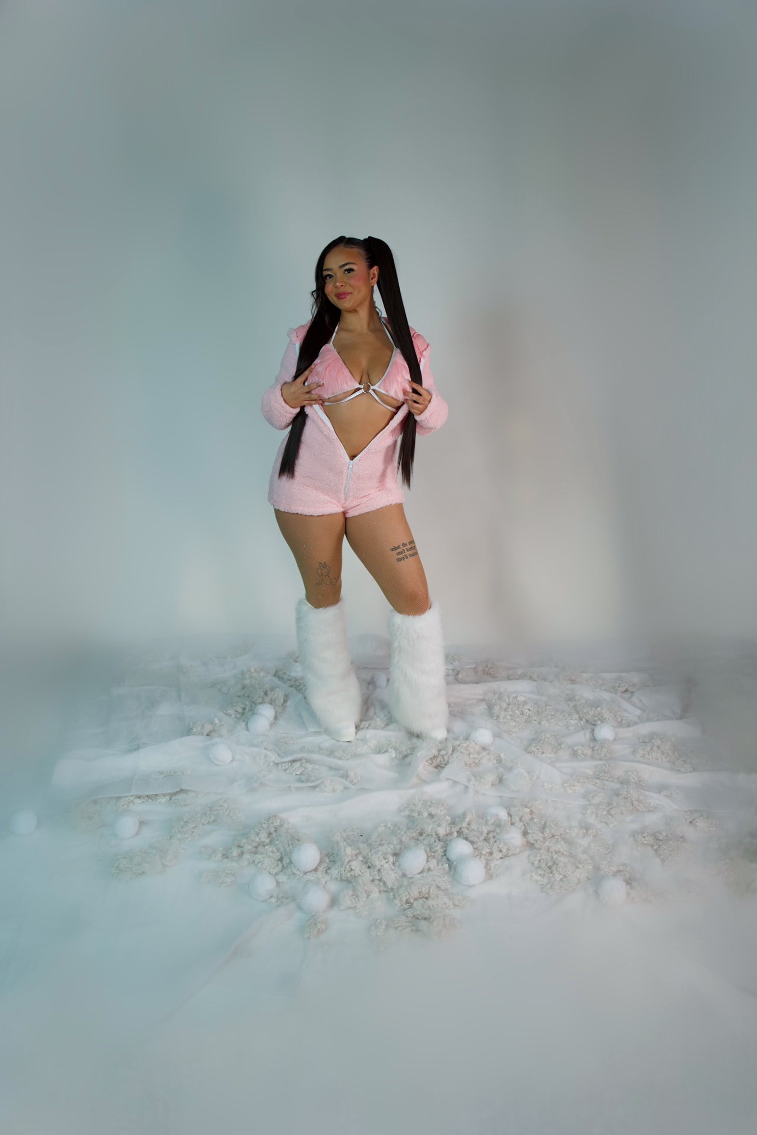 Cozy zip-up romper with bunny ears and a cute bunny tale